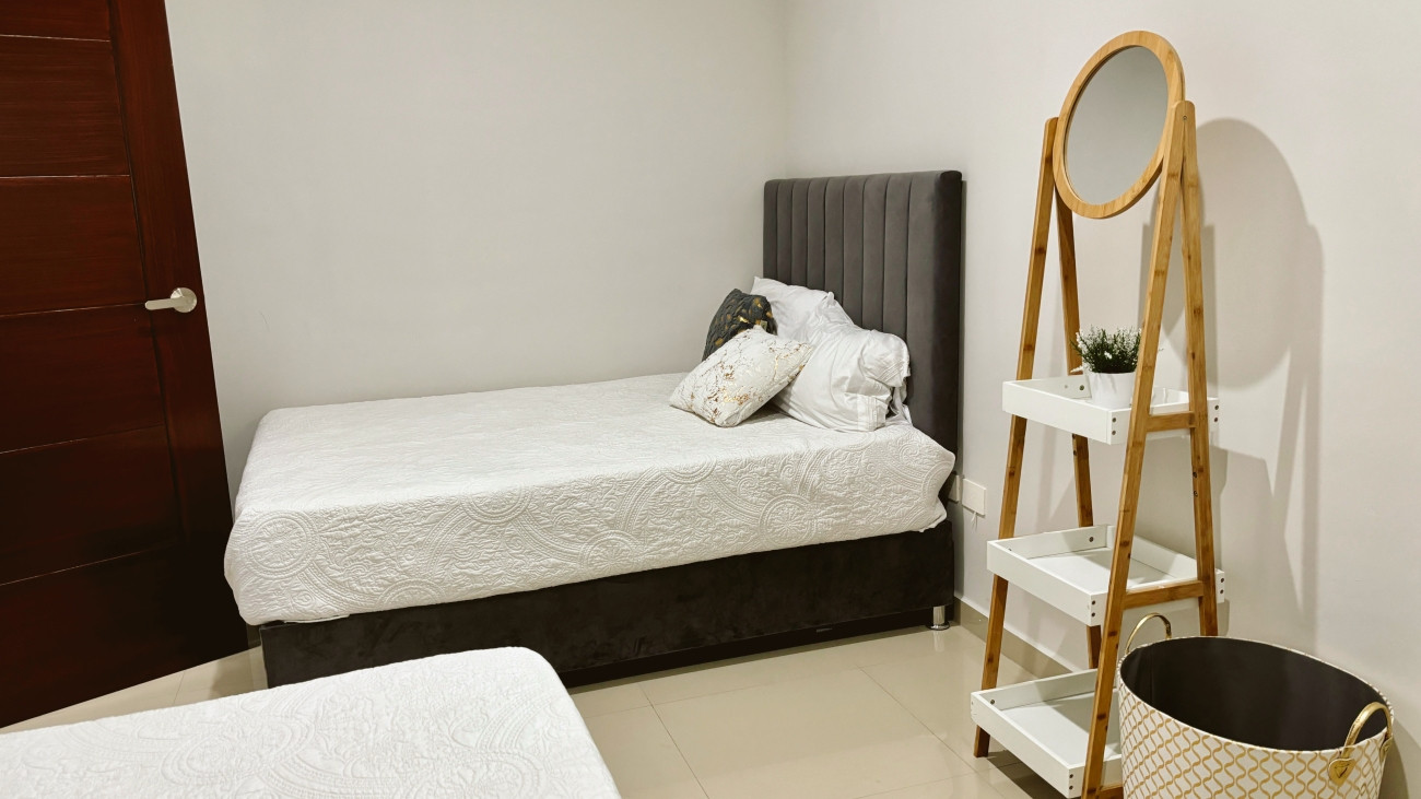 *La segunda habitación* ofrece dos cómodas camas individuales y también cuenta con aire acondicionado, brindándote el ambiente perfecto para relajarte después de un emocionante día explorando la ciudad.