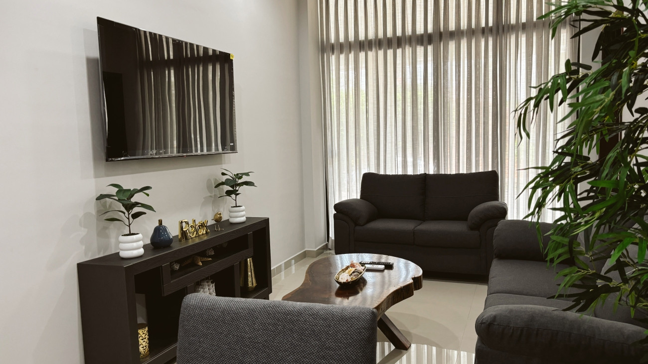 En *la sala de estar, podrás relajarte cómodamente mientras disfrutas de la televisión. **El comedor* con capacidad para seis personas es ideal para compartir deliciosas comidas y momentos especiales.